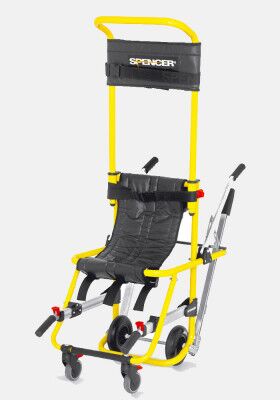 Spencer Pro Skid – E is an evacuation chair ideal for transfers on stairs thanks to the front and rear handles which allow lifting, and slides that allow easy movement on stairs. 4 wheels allow movement on flat surfaces.